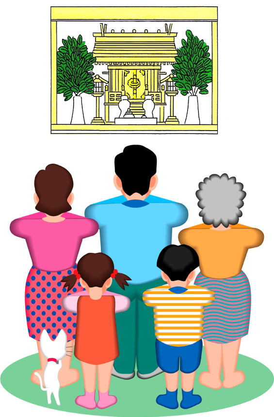 このように、日本では家庭の中に神さまをお祀りし、神さまが身近な存在であって、神さまと共に日々の生活を営んでまいりました。その家庭の中心になるのが神棚であり「家庭のまつり」を行うことで、家に災いがなく家族が元気に健康で暮らせるように祈り、神さまに感謝する心を養い、優しさと思いやりの心を育んできたのです。